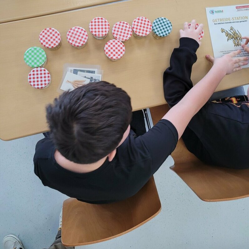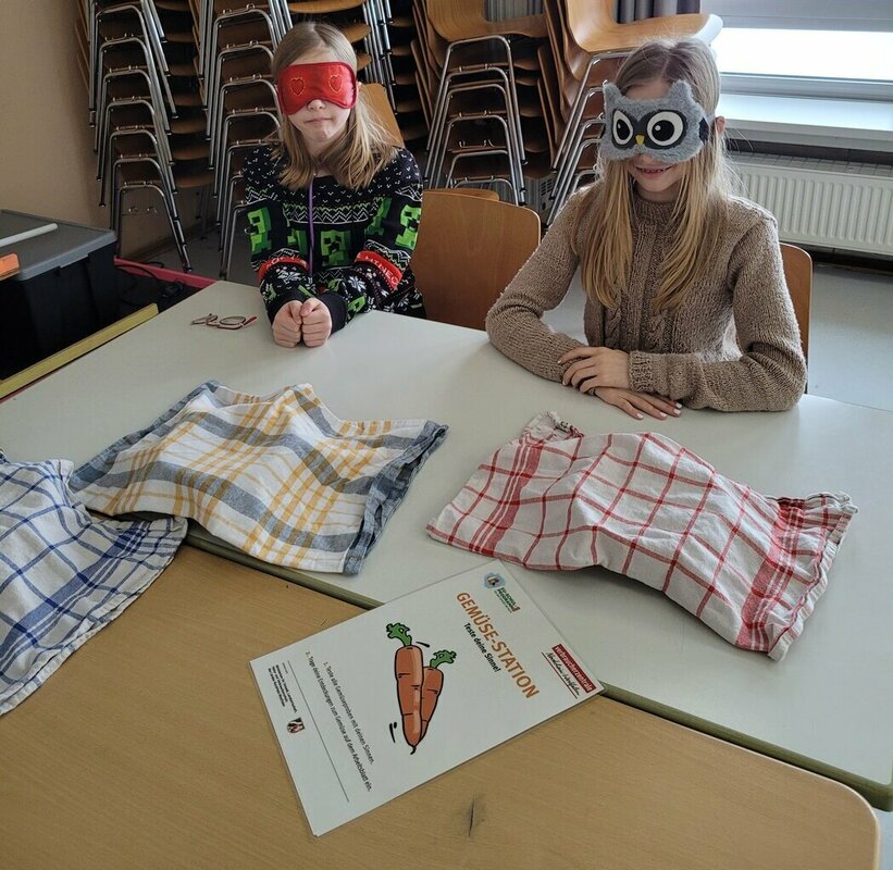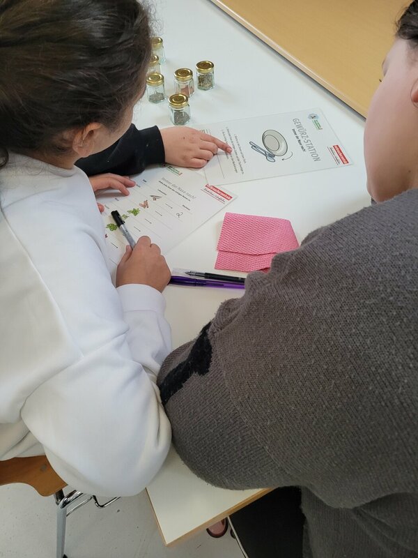Ziel des Geschmacks- und Sinnesparcours war es, die Kinder spielerisch und mit allen Sinnen "auf den Geschmack zu bringen". Oftmal essen Kinder nur das was sie kennen, frei nach der alten Redensweise "Was der Bauer nicht kennt, isst er nicht". Häufig kommen sie auch gar nicht in die Verlegenheit, etwas Neues ausprobieren zu können oder müssen. Schule hat auch hier den Auftrag, Kindern Dinge anzubieten, die unbekannt sind. Also konnten sie letzte Woche ihre Sinneswahrnehmung schulen, Geschmacksvorlieben und Abneigungen entdecken und die Vielfalt der Lebensmittel kennenlernen. Schnuppern, schütteln, schmecken, tasten – der Parcours lebte vom Ausprobieren und Erfahren. Den meisten hat es richtig Spaß gemacht, vielen Dank an Frau Sauer von der Verbraucherzentrale, die sich an 2 Tagen Zeit für unsere 5er nahm.